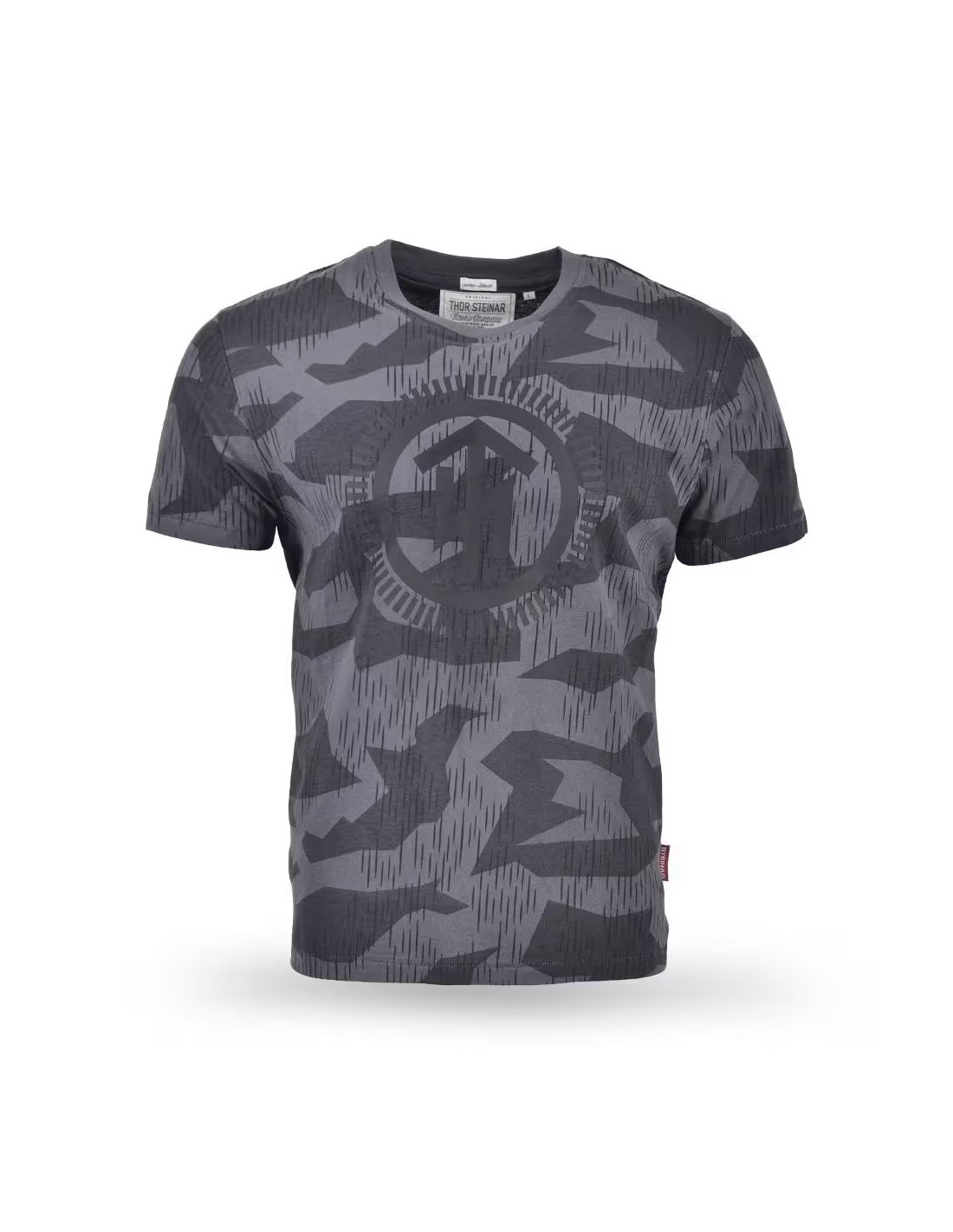 - Dizajn: Veľká a kvalitná potlač na hrudi – kruhové logo Thor Steinar s maskáčovým (camo) vzorom
