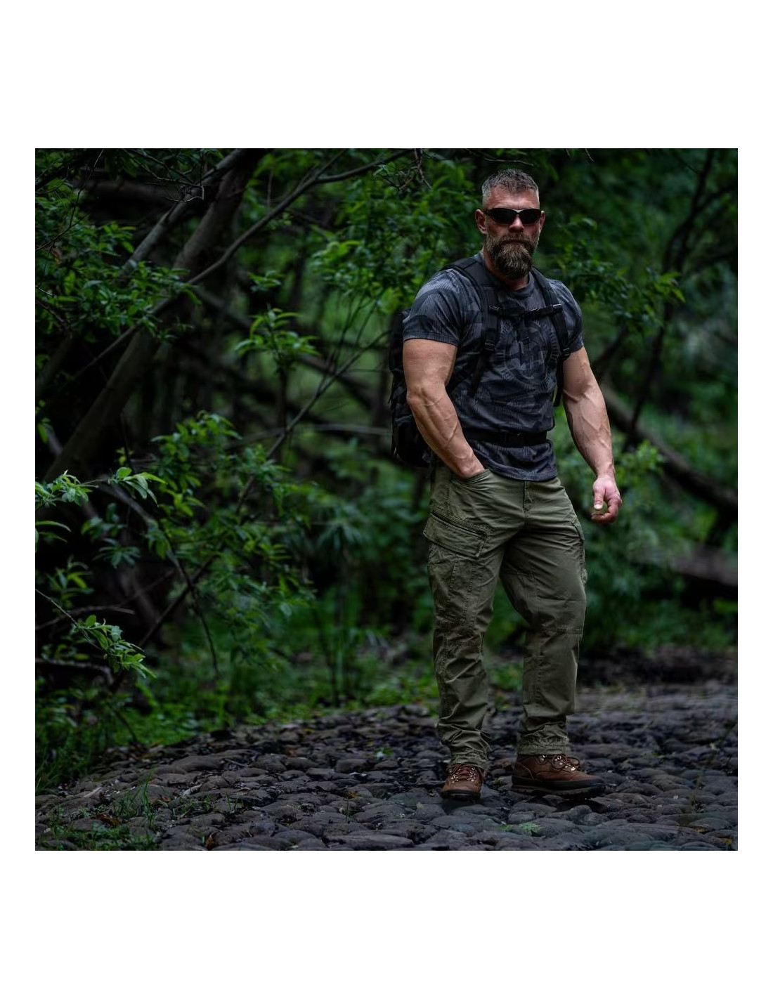 Toto klasické čierne pánske tričko od značky Thor Steinar je všetko, len nie nudné. Hlavným ťahákom je neprehliadnuteľná grafika na hrudi – ikonické logo značky zasadené do kruhu, ktoré je kompletne vyplnené štýlovým maskáčovým (camouflage) vzorom. Tento detail skvele kontrastuje s tmavým podkladom a dodáva tričku drsný, chlapský vzhľad.