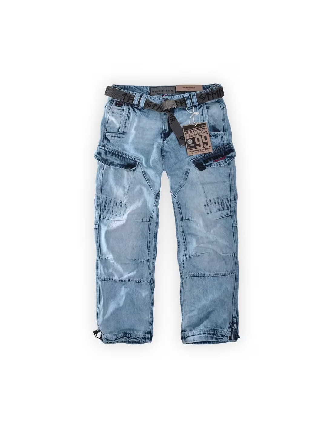 Obľúbený model Ken prichádza v svetlomodrom prevedení, ktoré mu dodáva autentický retro nádych bez straty jeho technickej dominancie. Tieto džínsy typu „cargo“ sú stvorené pre tých, ktorí vyžadujú maximálnu funkčnosť a robustný vzhľad aj v teplejších mesiacoch alebo pri voľnočasových aktivitách. Výrazné pranie a masívne detaily robia z tohto modelu kúsok, ktorý okamžite zaujme.