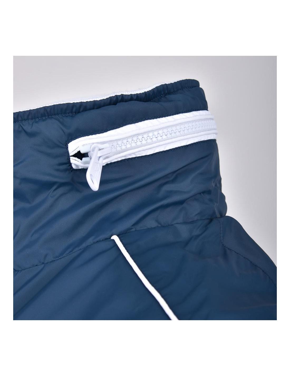Bunda do pása s kvalitným spracovaním patentov na rukávoch, leme a vnútornom golieri. Vysoko uzatvárateľný golier s integrovanou kapucňou. Dve náprsné vreká na zips a dve bedrové vrecká na zips s kontrasnými zipsami. Nad ľavým náprsným vreckom malý nápis a malý napis pod golierom.