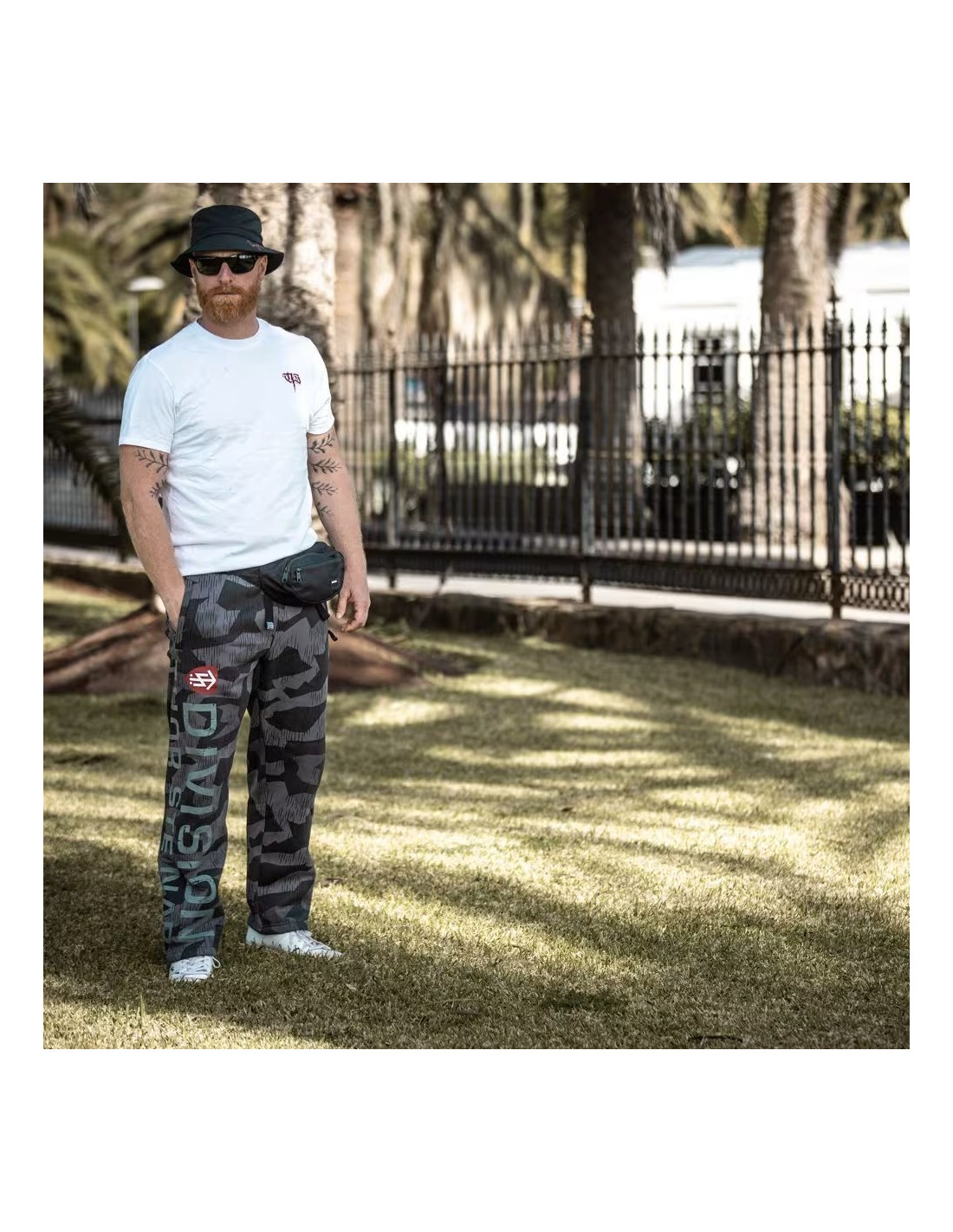 • Doplnkový nápis: Hneď pod hlavným veľkým nápisom sa nachádza menší biely text „NORDIC BROTHERHOOD“ (v preklade "Severské bratstvo"). Tento text je písaný jednoduchším, klasickým tlačeným písmom a kopíruje oblúkový tvar horného nápisu.
