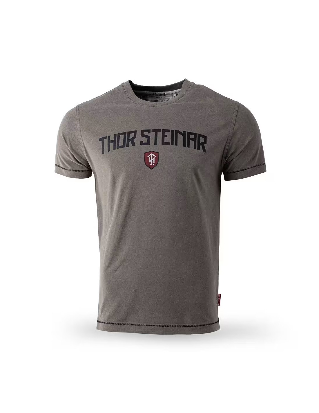 Tento model je ideálnou voľbou pre mužov, ktorí uprednostňujú čisté línie a výrazné farby. Tričko v hlbokom bordovom (vínovom) odtieni pôsobí elegantne a zároveň športovo. Dominantou je biely oblúkový nápis „THOR STEINAR“ na hrudi, pod ktorým sa nachádza decentné logo v tvare červeného štítu.