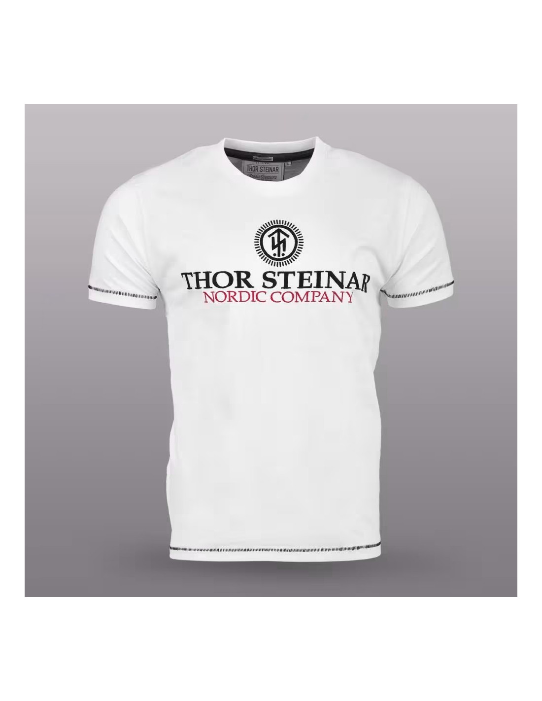• Prepracovaný dizajn: Veľký centrálny motív s logom a nápisom Thor Steinar Nordic Company v tmavej farbe.