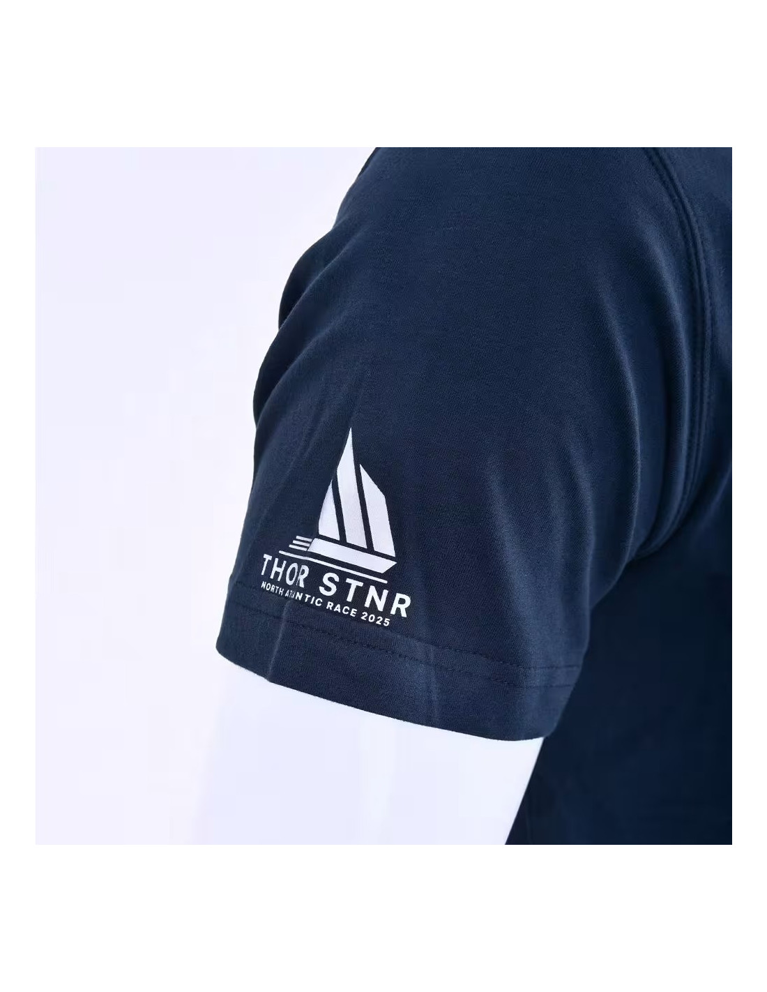 • Tematické texty: Pod hlavnou grafikou sa nachádzajú nápisy odkazujúce na históriu značky a podporu podujatia „North Atlantic Race 2025“, čo tričku dodáva športový nádych.